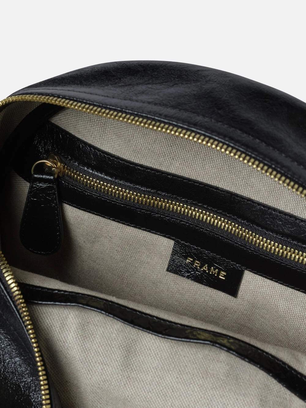 A new FRAME silhouette—the Blini Circle Bag in medium imbues a luxurious vintage aesthetic. It’s crafted in buttery-soft 100% leather and features a zipper closure, interior zipper pocket, and large envelope compartment. Attach its adjustable crossbody strap for hands-free ease and sophistication.