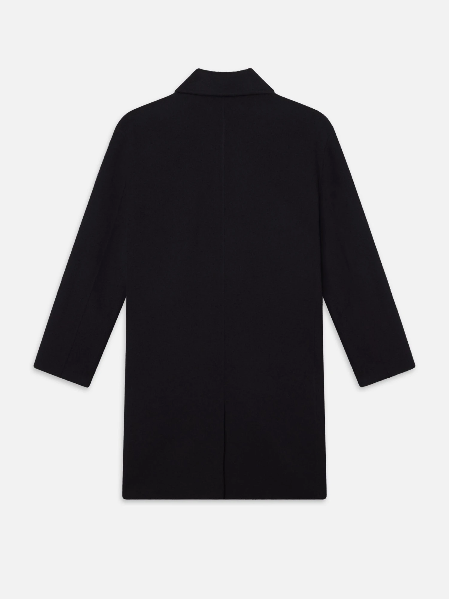 Tailored from 100% wool with a double-faced finish, this overcoat offers warmth without excess weight. Designed with clean lines and a sharp collar for timeless, everyday sophistication.