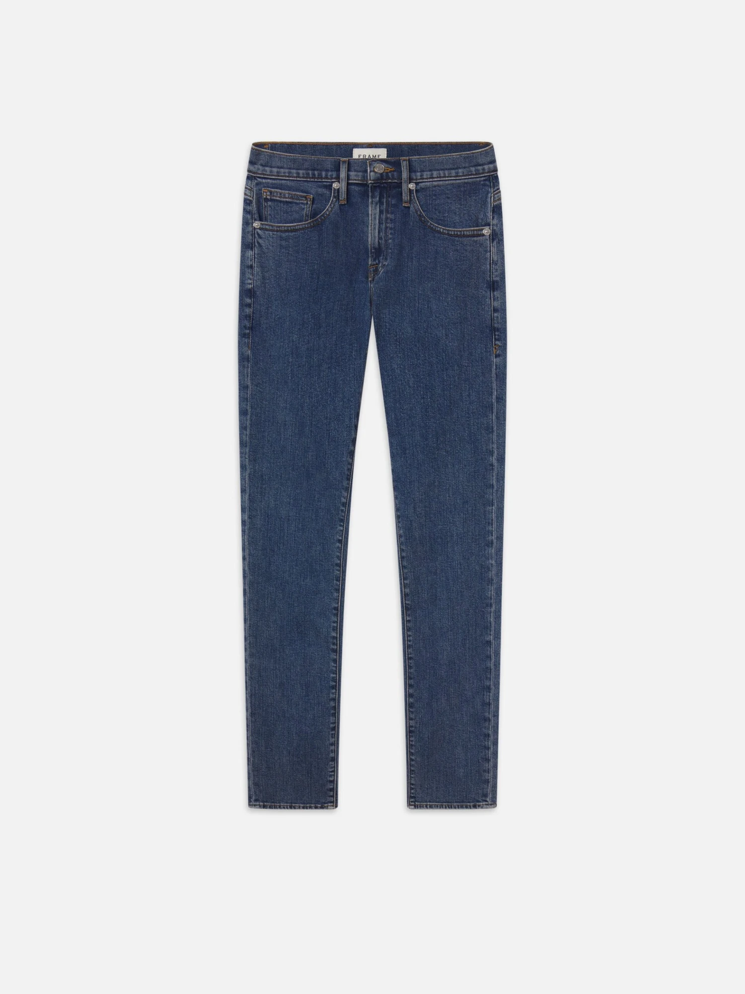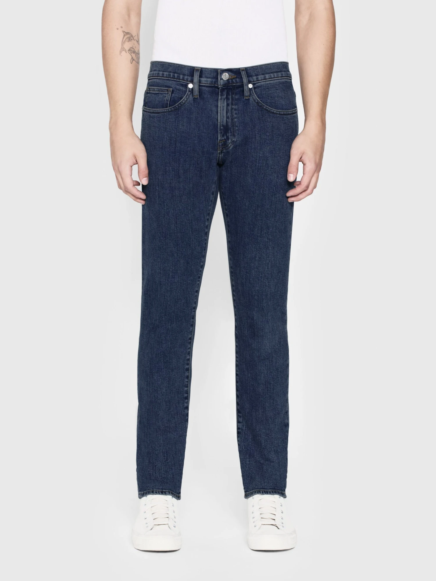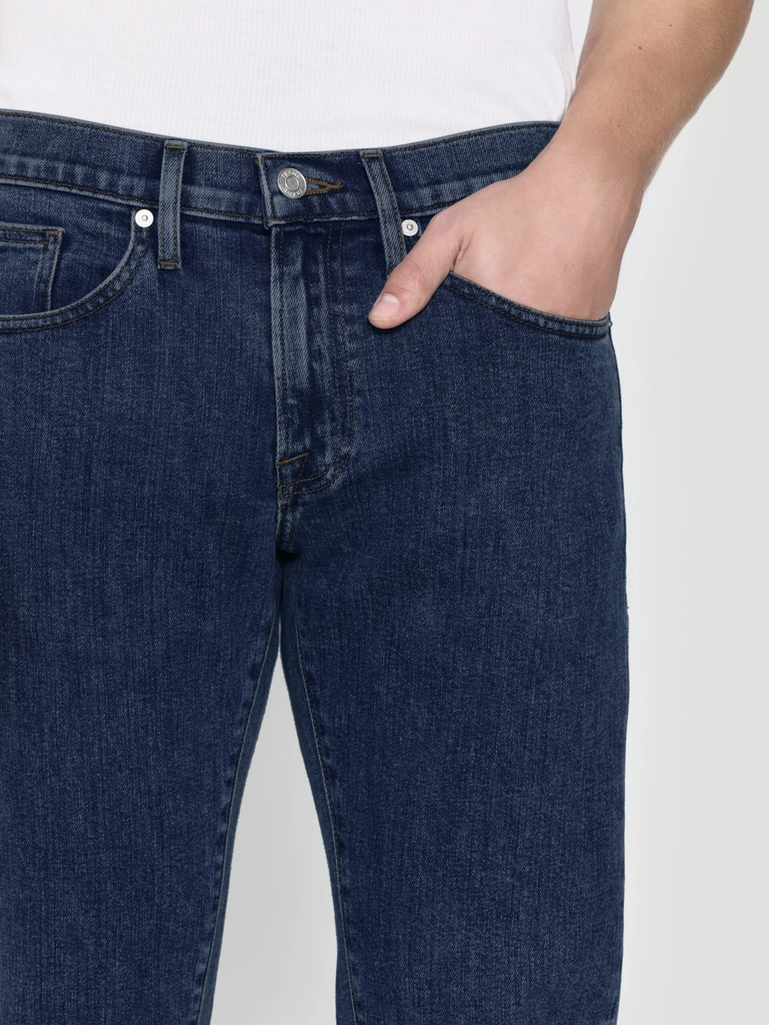 A FRAME signature jean, this style is designed with a classic 5-pocket construction, comfortable mid rise, flattering straight leg, and tapered slim fit at the leg opening. Crafted from smooth, comfort-stretch denim.