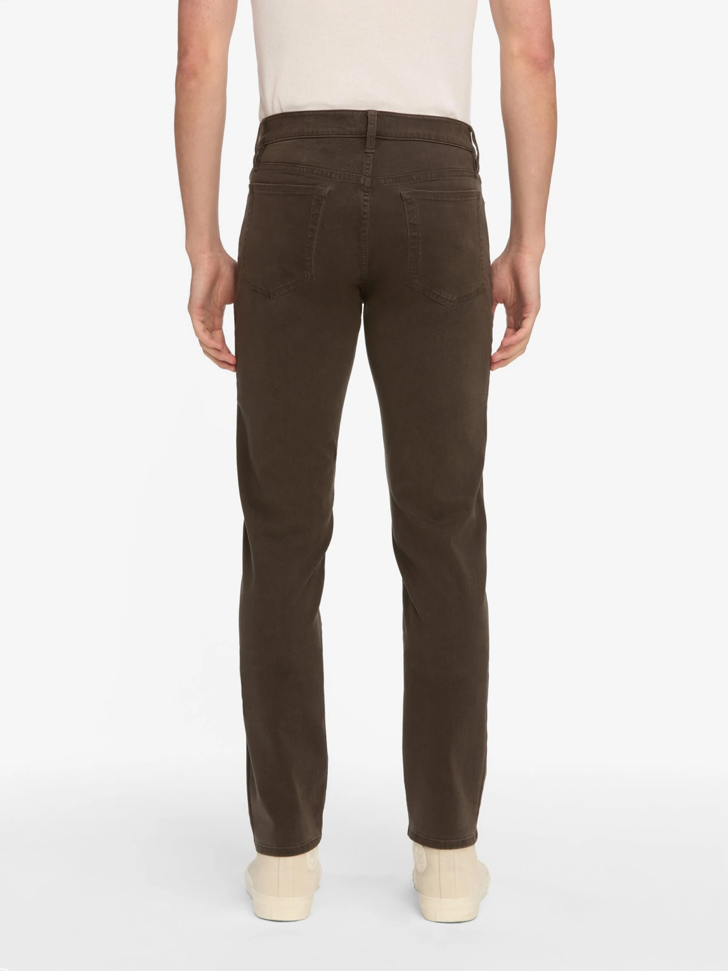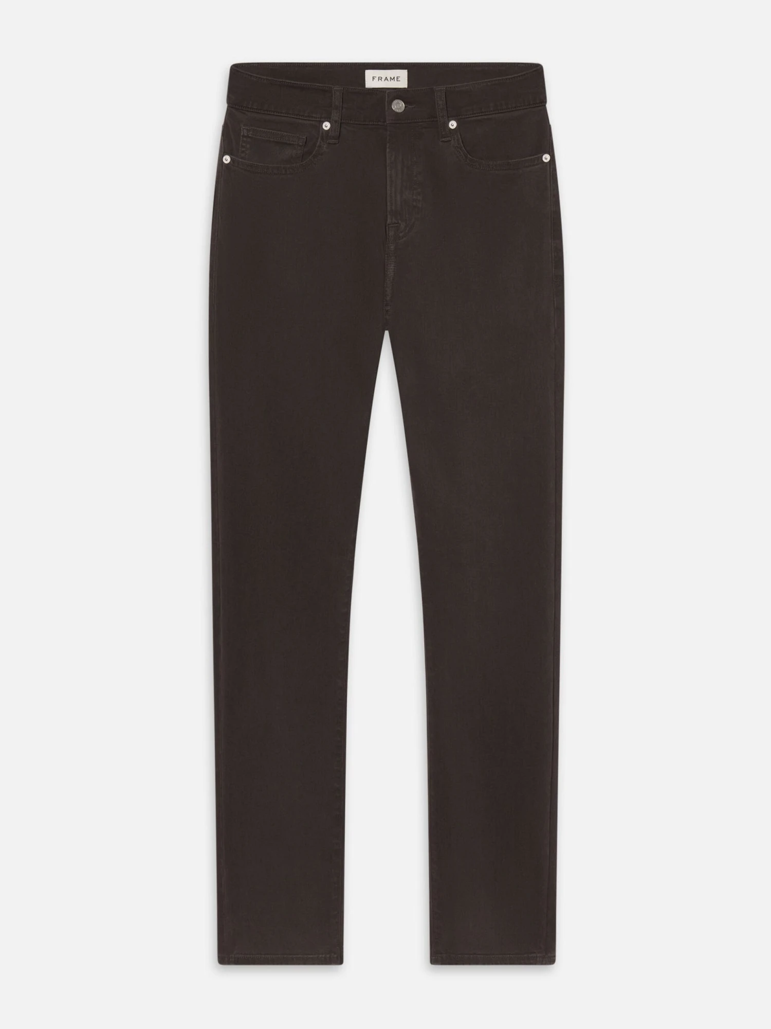 A FRAME signature jean, this style is designed with a classic 5-pocket construction, comfortable mid rise, flattering straight leg, and tapered slim fit at the leg opening. Crafted from smooth Structured Stretch denim.