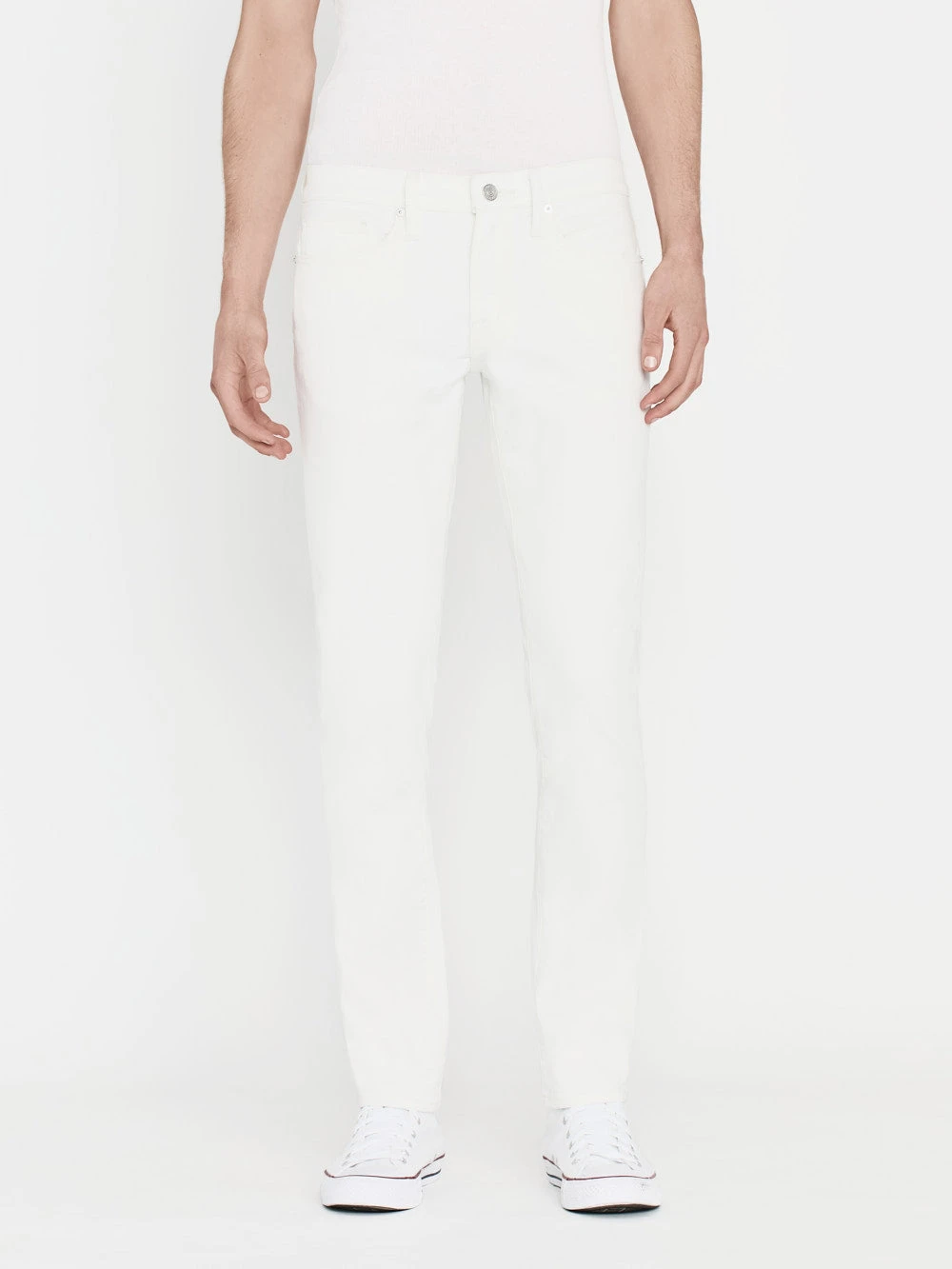 Our signature slim-fit jeans feature a mid-rise silhouette cut from comfortable premium stretch denim twill. This pure white wash is an all-season staple that works with tees and summary-downs by day—explore monochrome with white, and contrast with black—and cashmere sweaters and wool trench coats by night.