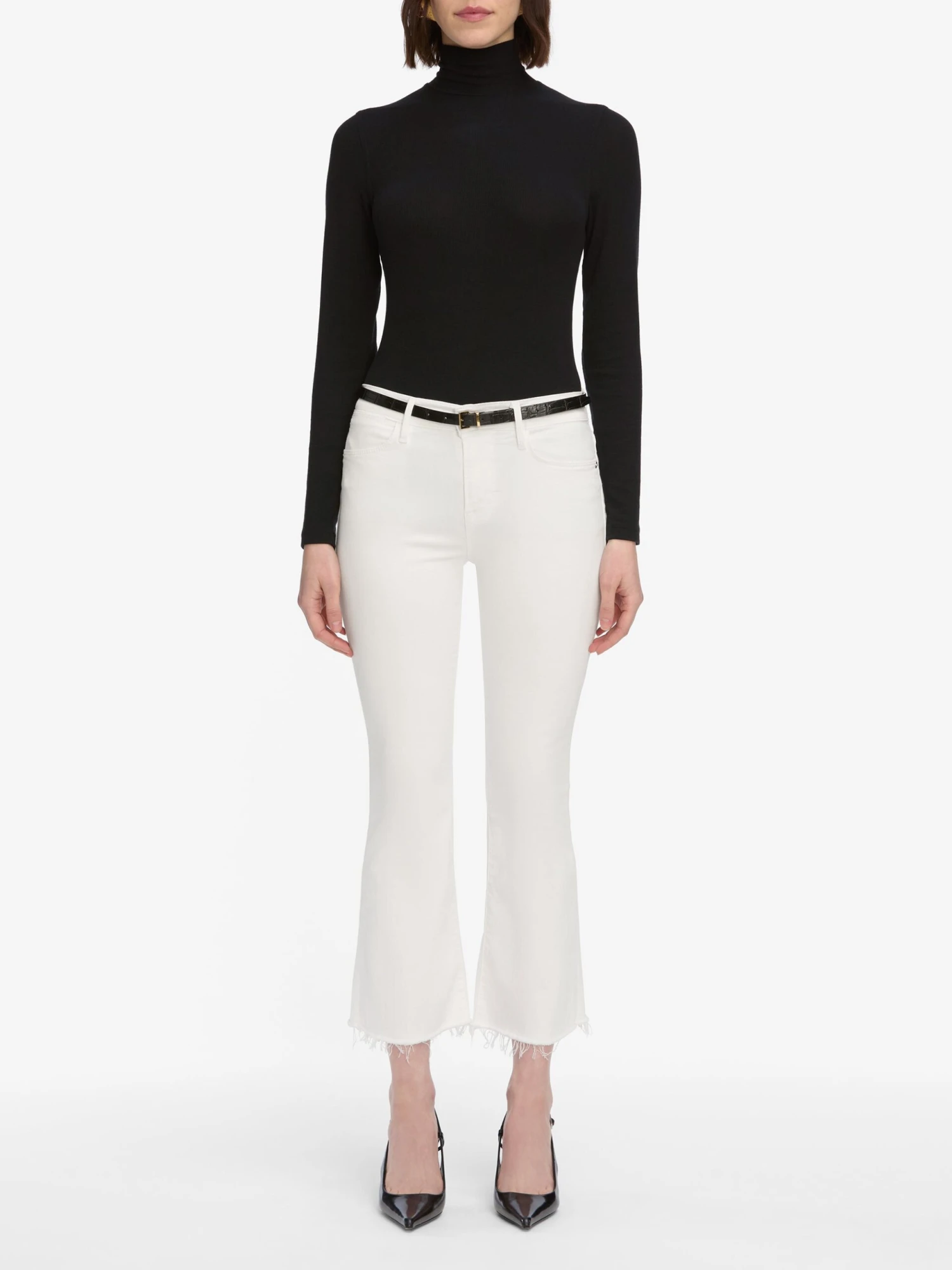 Le Crop Mini Boot — White Raw Fray