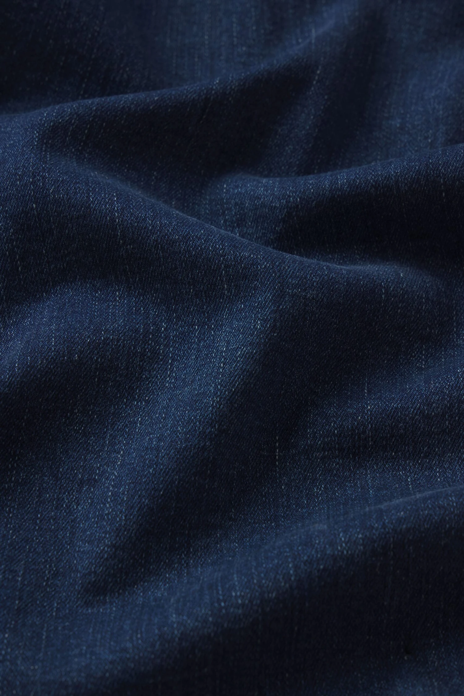 A FRAME introduction to the best-selling palazzo silhouette, this dark blue jean is designed with a flattering high rise, fitted hip, and subtle wide-leg flare that hits at the floor. Crafted from a sustainable, ultra-stretch cotton blend for soft and comfortable wear.