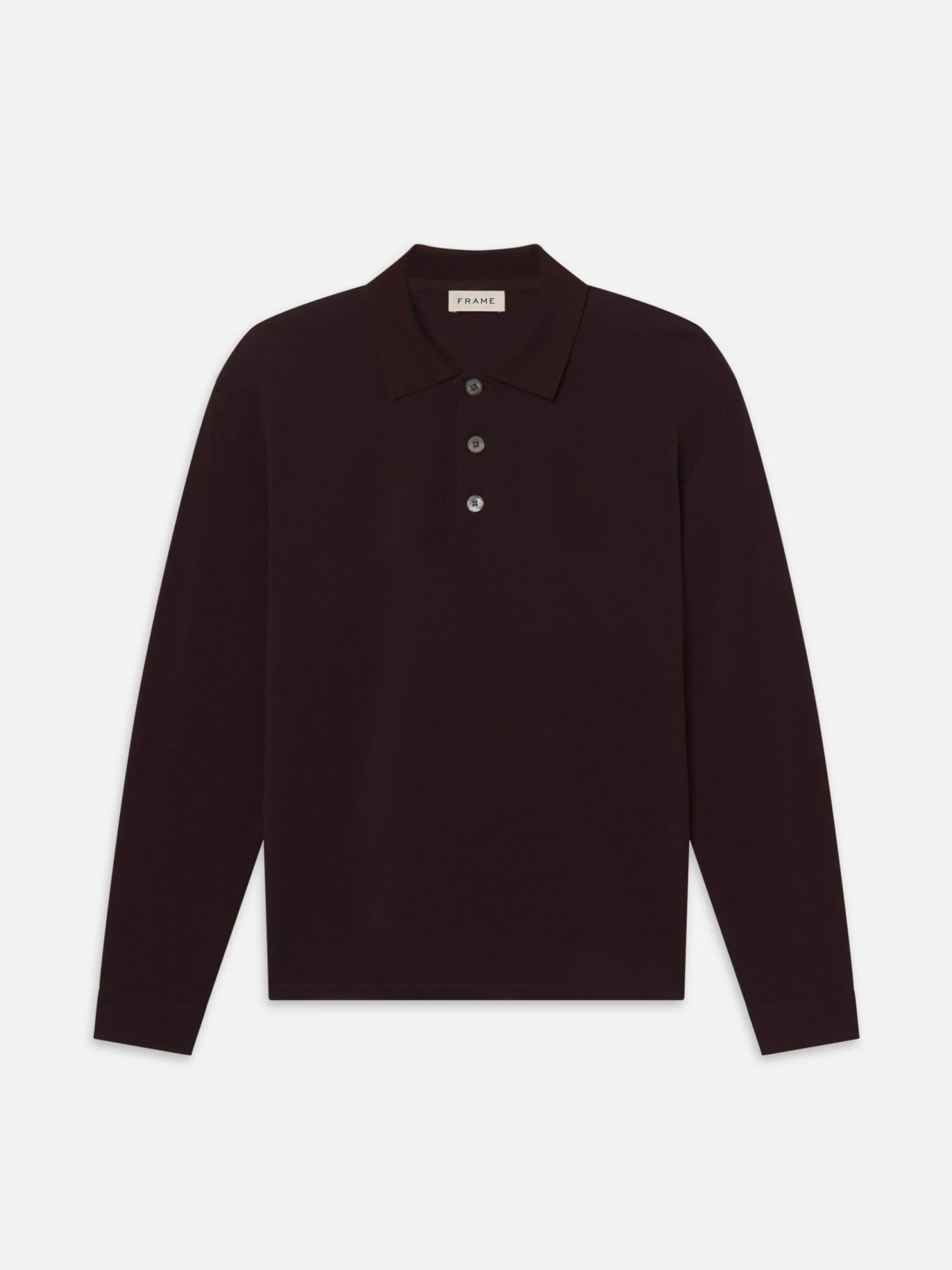 A long sleeve polo built for warmer months. Knit in a lightweight pique that breathes like a tee but carries the structure of a shirt, this elevated essential is finished with a tailored collar, clean cuffs, and a smooth handfeel. Ideal for office layering or solo wear off-duty.