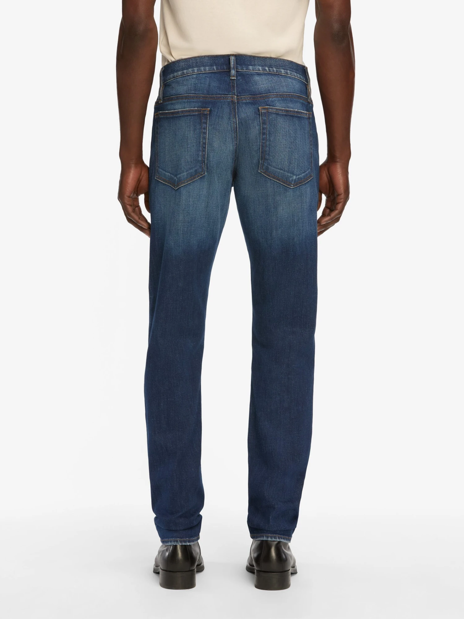 Our mid-rise, straight-leg silhouette is cut from a sustainable stretch-cotton blend using post-consumer recycled cotton and organic cotton. This 5-pocket pair easily achieves a smart, casual look in any wash.