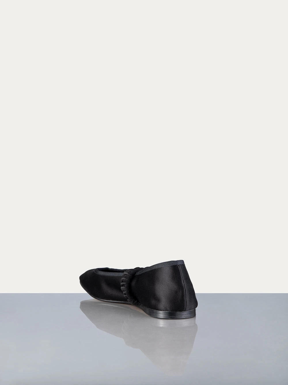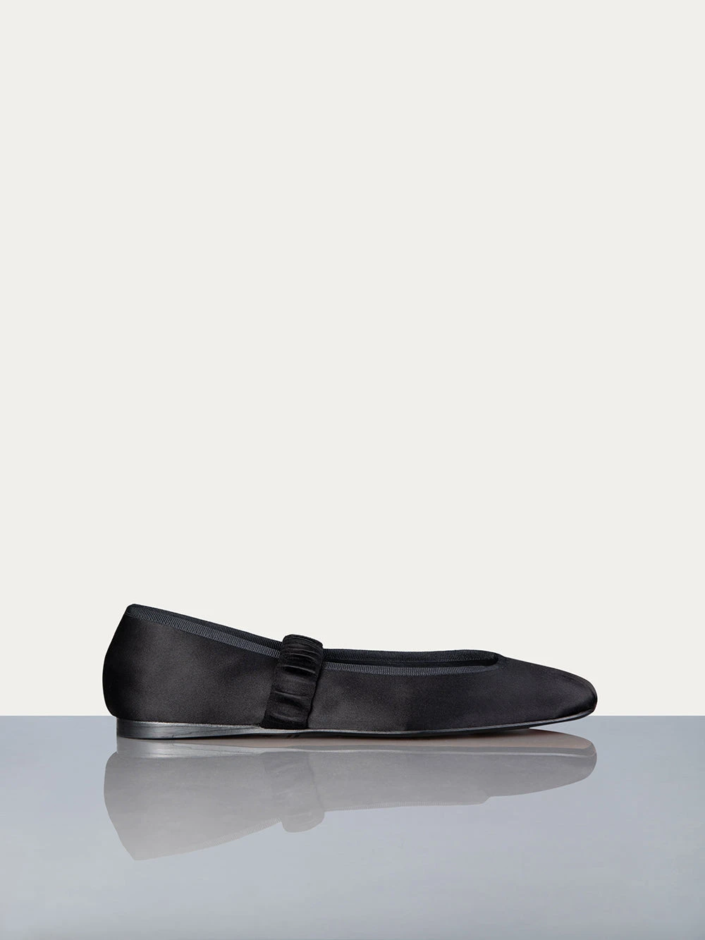 Embrace the balletcore trend this fall with the Odin Ballet Flat, crafted from luxurious Italian satin and featuring a ruched satin strap.