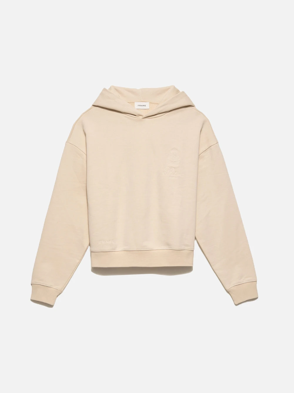 With a modern fit that tapers toward the waist, this Ritz Pink hoodie works as a neutral—wear in place of cream or white for an elevated take on leisure dressing. Tonal embroidered details on front and back pay homage to one of the hotel’s best offerings. Style yours under a trench or oversized blazer, or with the matching joggers.