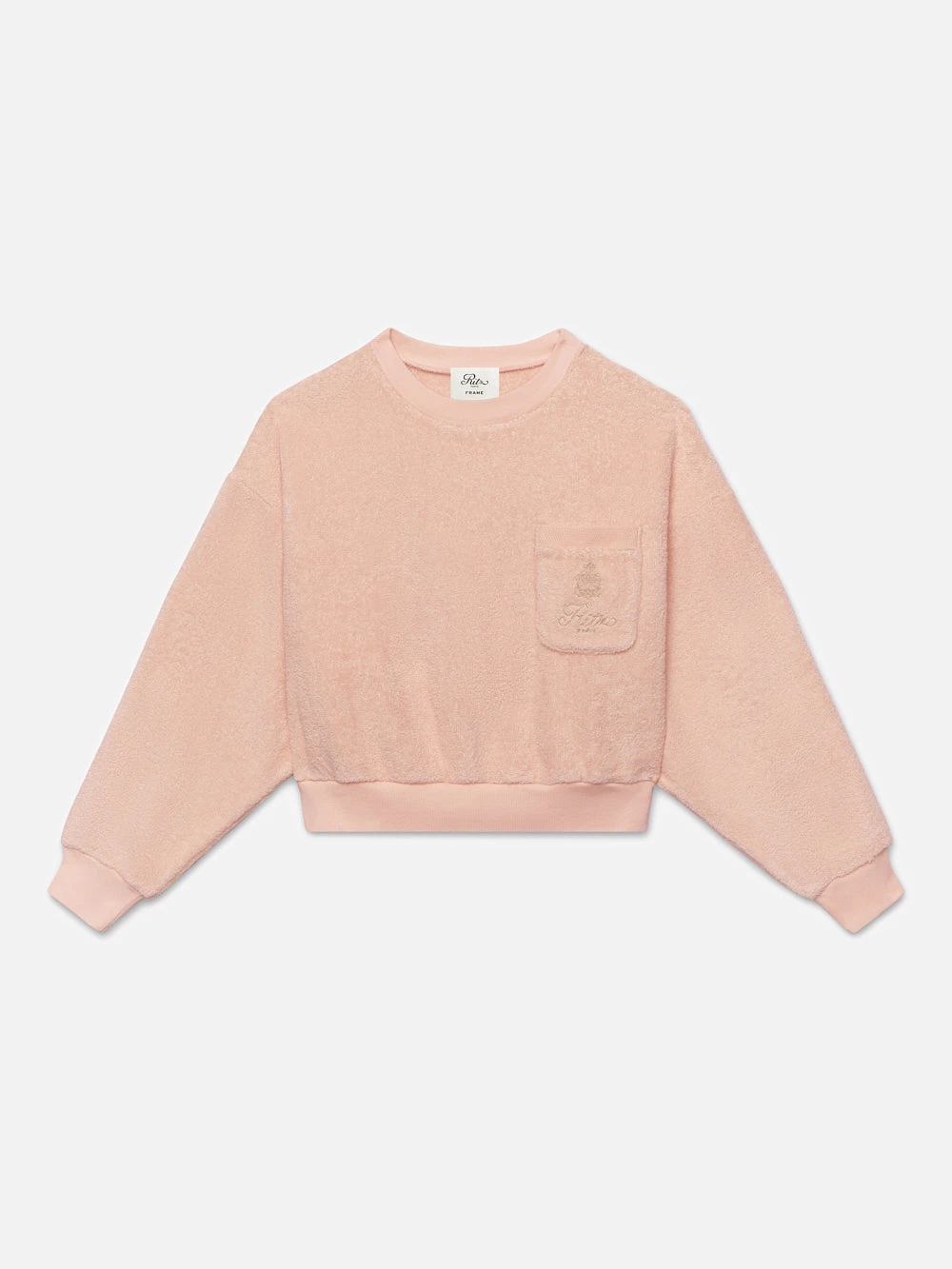 This Cropped Terry Sweatshirt in Ritz Pink has a luxurious, vintage resortwear mood. Crafted in a plush cotton terry, it’s cut to a relaxed fit and features a front pocket with tonal Ritz Paris embroidered detailing. Style it with the coordinating Terry Short.