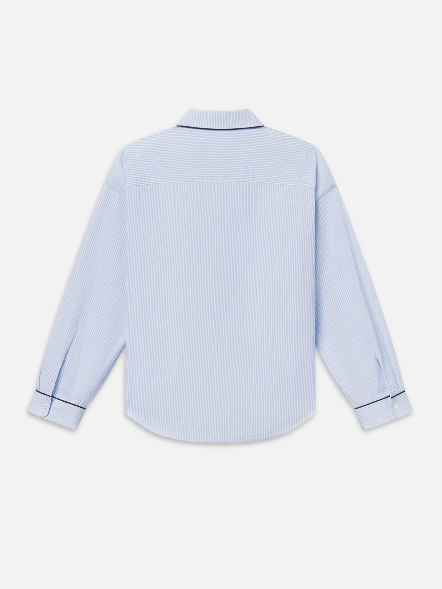 Made from 100% cotton in crisp blue-and-white stripes, this shirt nods to classic sleepwear but wears well beyond the bedroom. Designed with a relaxed fit, notched collar, and curved shirttail hem, it forms a full set with the matching pajama pant. Fit note: True to size for men; women may prefer one size down for a closer fit.
