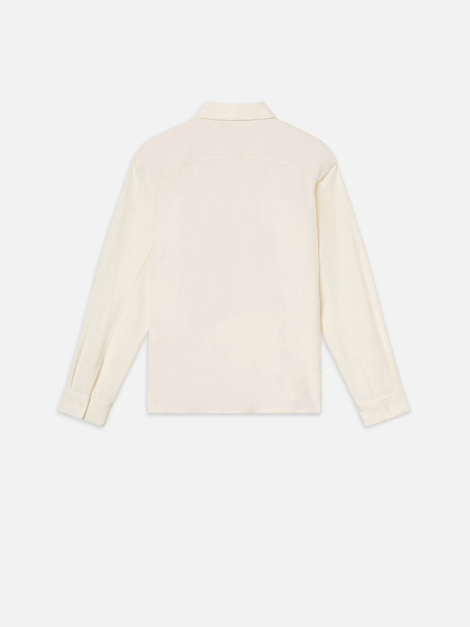 Sophisticated from afar, surprising up close. With its soft texture and pared-back silhouette, this neutral long-sleeve shirt delivers quiet detail that sets it apart.