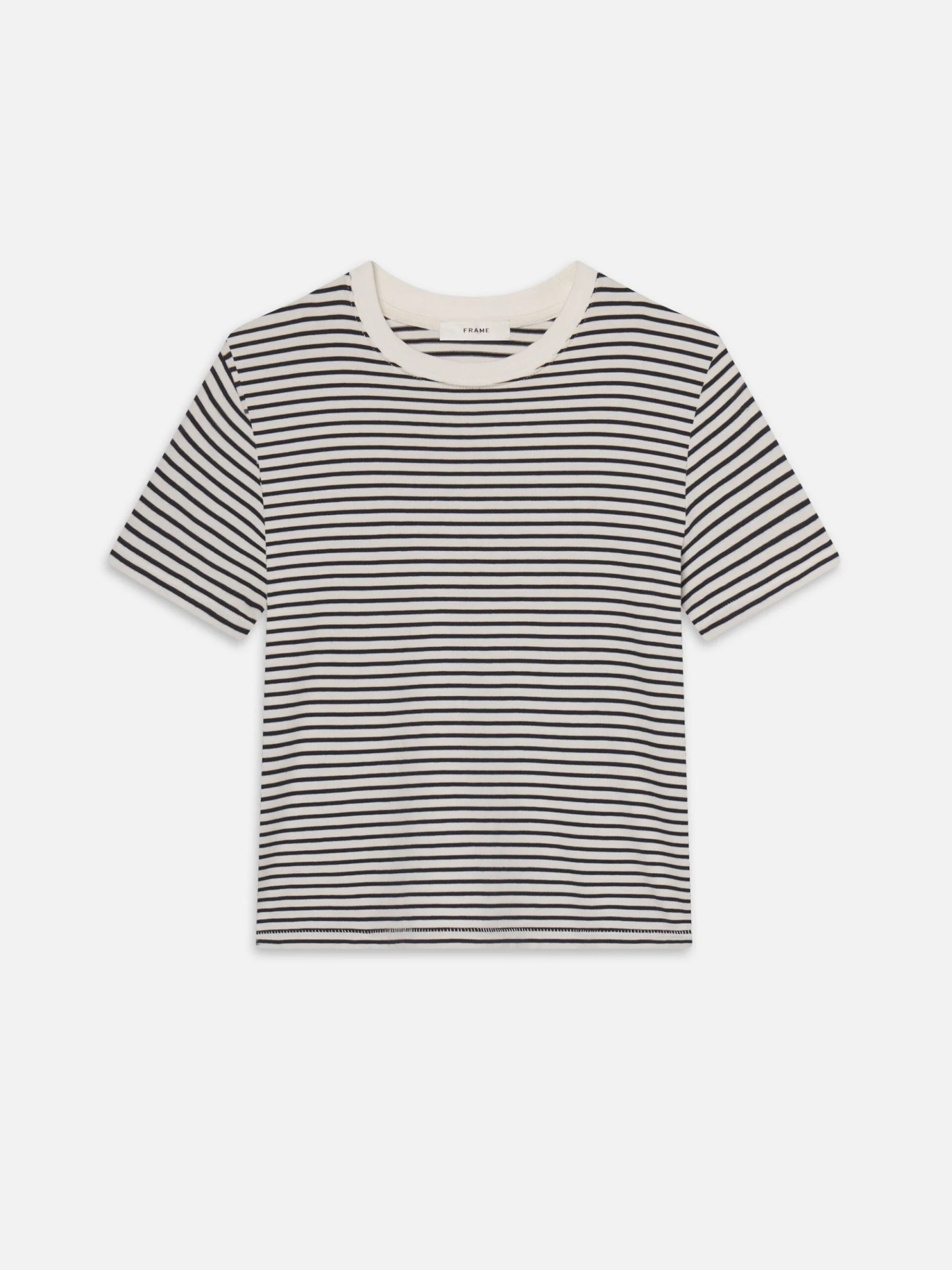 Crafted in indulgently soft and slightly sheer cotton, this striped baby tee is your go-to everyday t-shirt. Cut to a slightly shrunken fit, you can pair it with denim for a chic, fuss-free uniform.