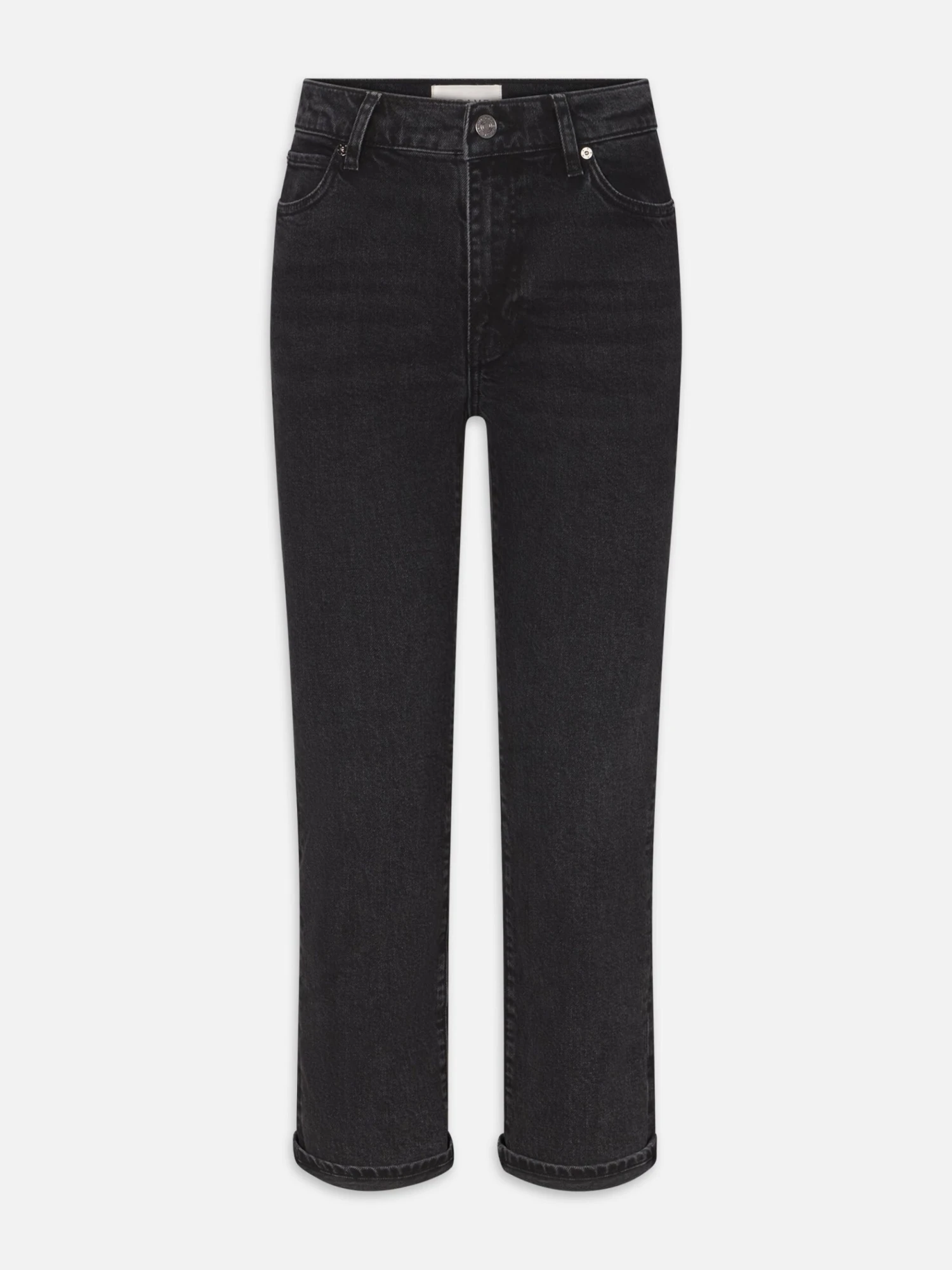 A boyfriend jean for the new millennium, this mid-rise silhouette hugs the hip and finishes at the ankle. Cut in Structured Stretch denim for vintage character and modern comfort, in a black wash we love cuffed—but is just as good unrolled.