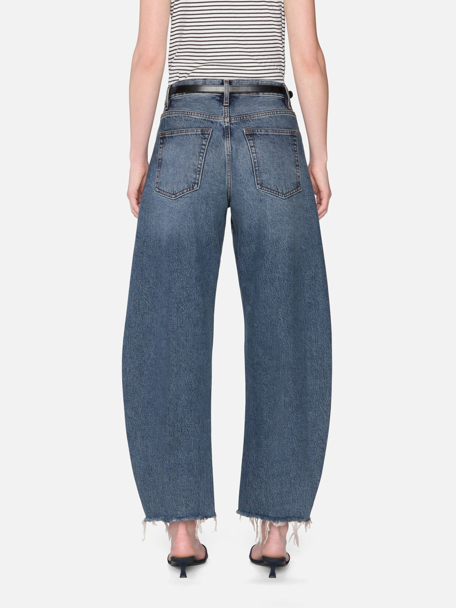 The best-selling Bubble, now with a shorter 27″ inseam. The exaggerated take on the trending barrel silhouette is a unique fit and instant closet necessity. With a flattering high rise, these jeans have a curved outseam for a playful bubble effect. Note the raw, fringed hem for a pre-loved look.