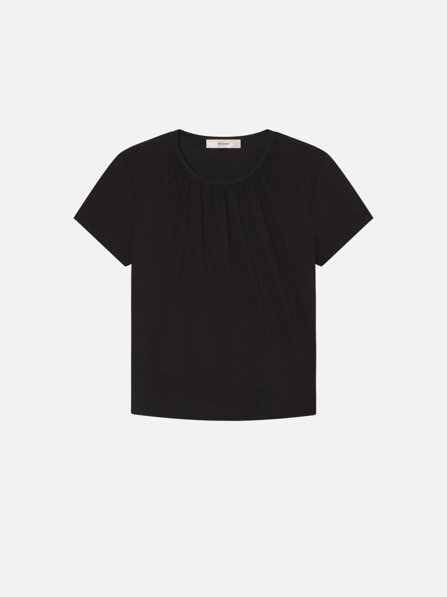 A refined take on the everyday tee. Crafted from soft cotton with a touch of stretch, the Gathered Tee features subtle ruching at the round neckline for shape and texture—an essential layer with just enough detail.