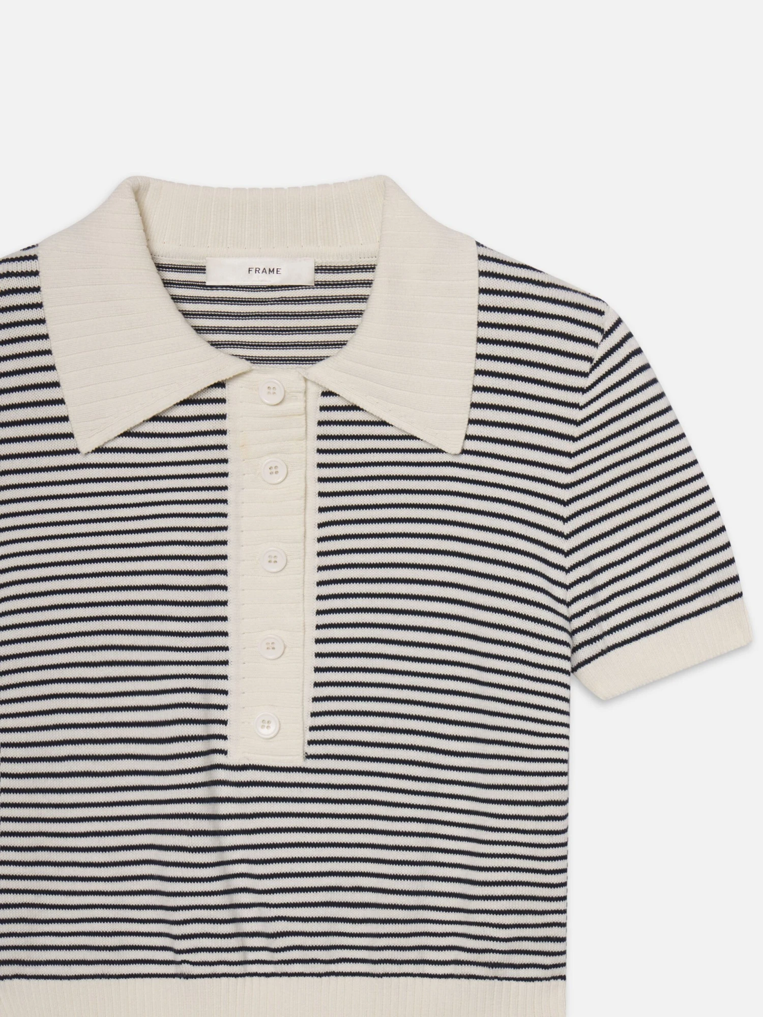 Graduated from basic. The Graduate Polo features summarys, navy stripes, a cream collar and placket, and ribbed trim for a crisp, fitted shape. Smart with trousers, easy with denim—this one passes every test.