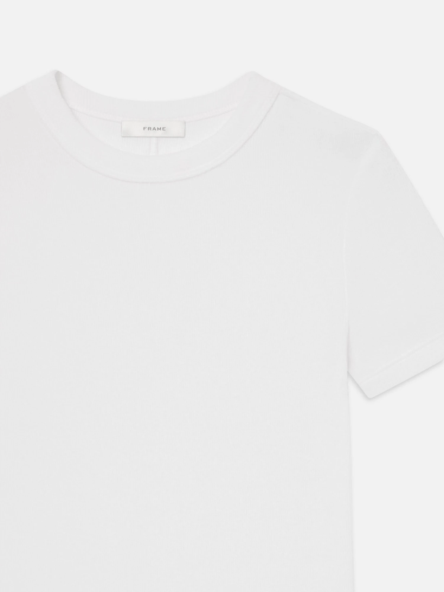 Soft and stretchy, this baby tee enhances your go-to everyday t-shirt with fine ribbed trim. Cut to a slightly shrunken fit, you can pair it with denim for a chic, fuss-free uniform.