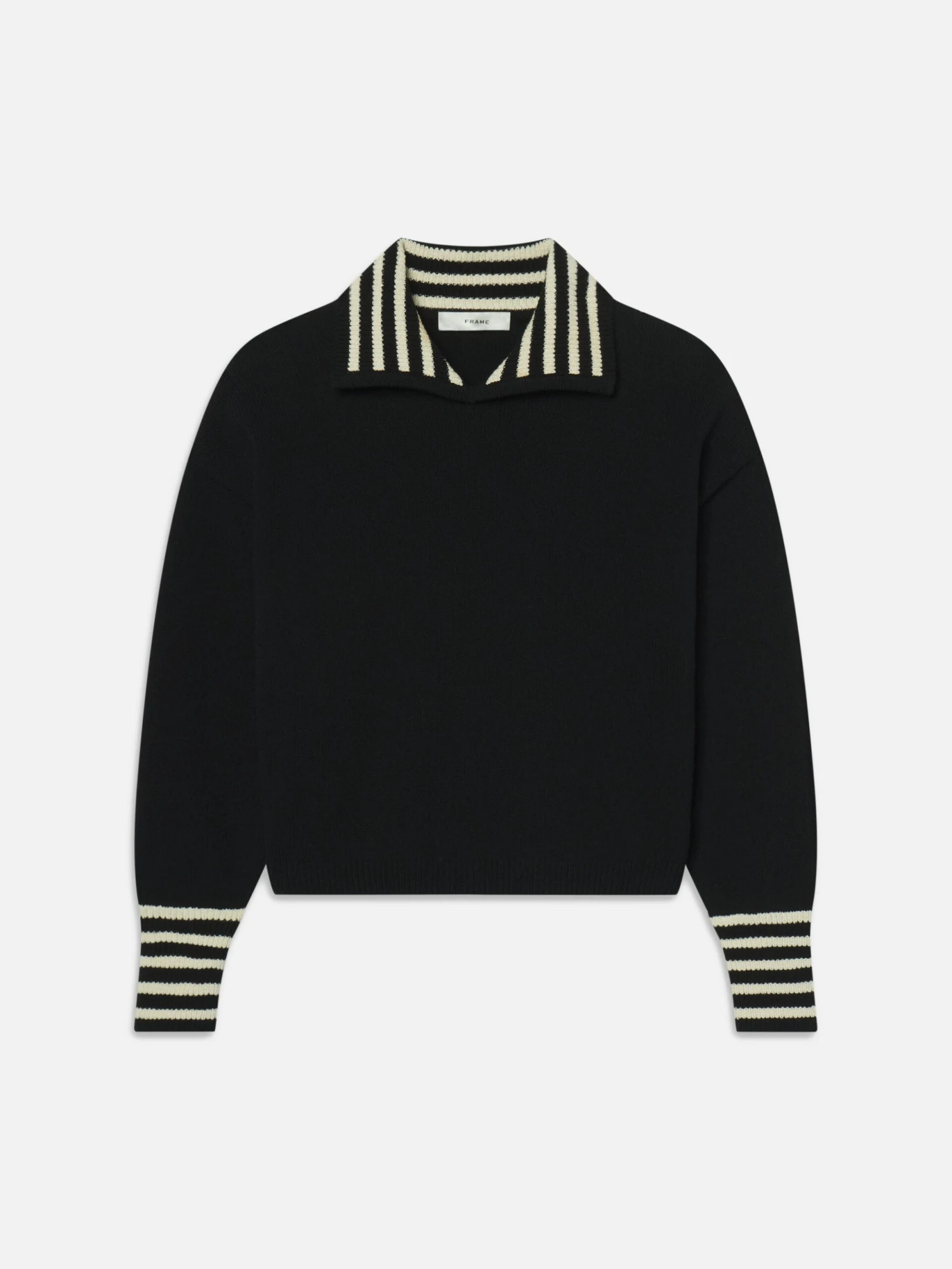 Tailored in high-twist cotton yarn, The Sailor Pullover features contrast striping at the cuff and neck for a subtle nod to nautical styling. The pointed collar and elongated cuff add a chic visual twist that makes for a finished look.
