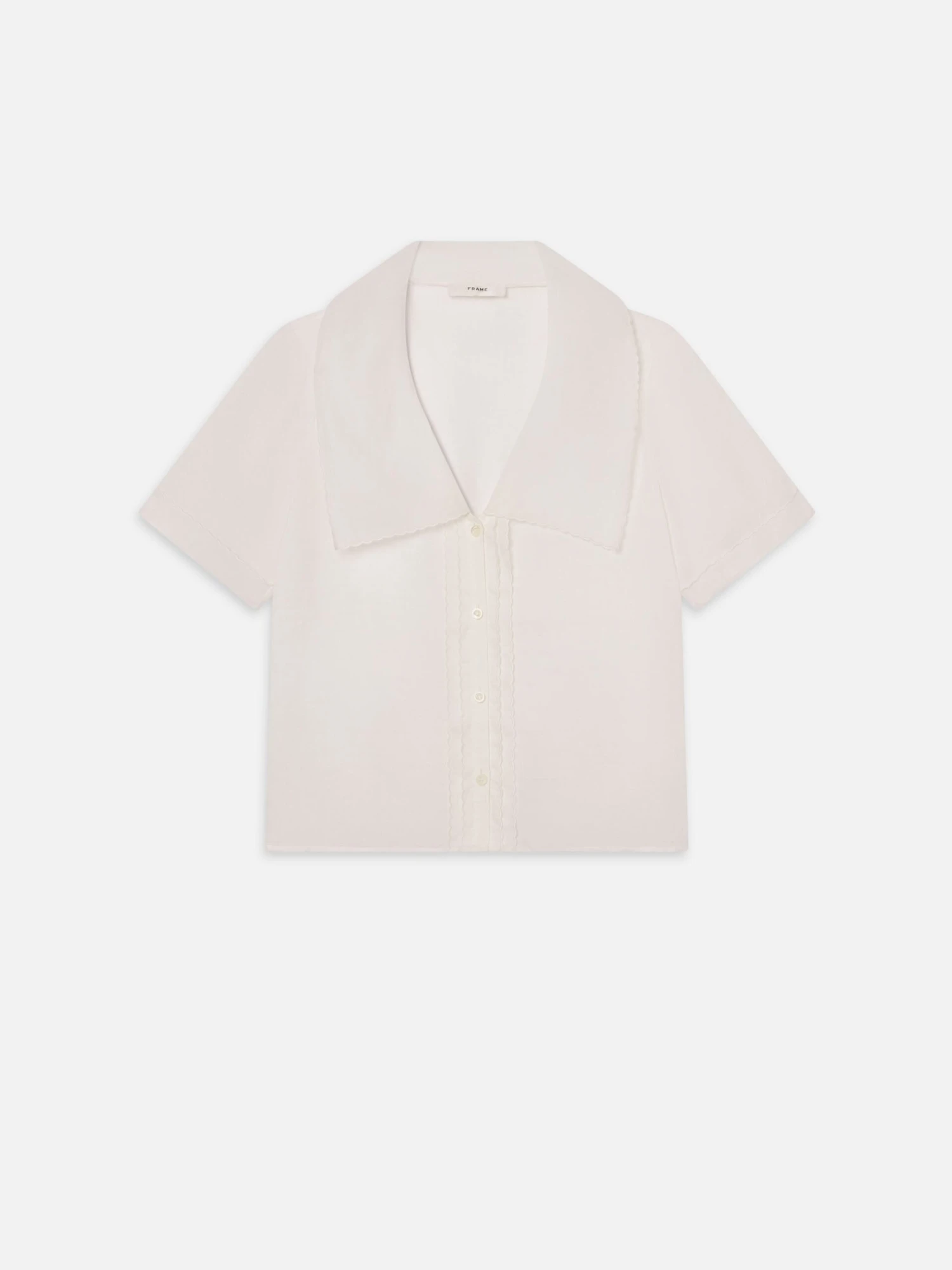 A sleeveless silhouette with a soft sailor collar and delicate V-neckline. Cut from airy ramie, it drapes gently against the body with a natural ease. Pair it with denim or tailoring—think fine, feminine, and endlessly wearable.