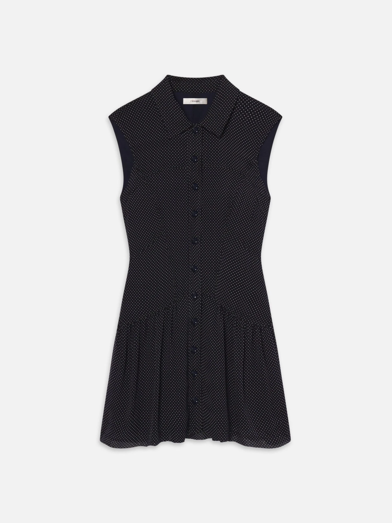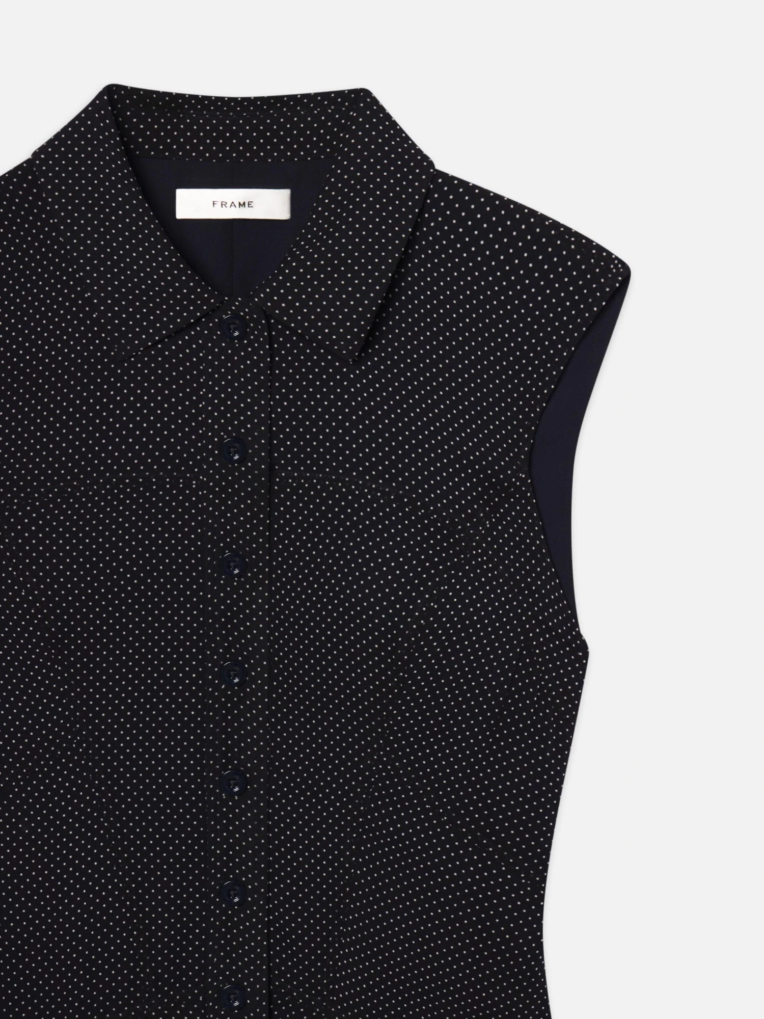 Effortless by design. Cut from pure silk with a polka dot print, this sleeveless summary-front dress is light, fluid, and easy to wear. Fitted through the bodice with a softly flared hem—it’s the kind of piece that does the work for you.