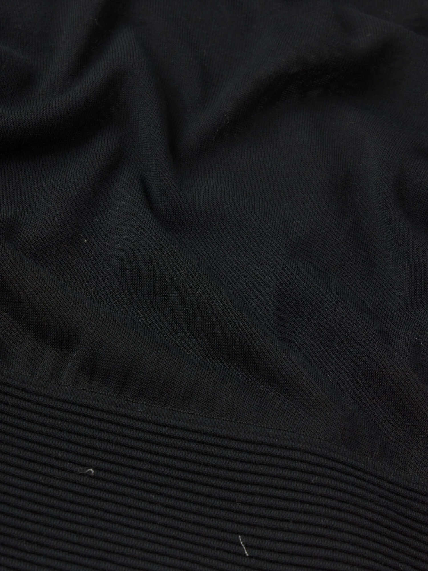 This lightweight knit features a wide turtleneck, loose blouson top, and snug bottom band for the ultimate feminine shape. A sheer top contrasts the turtleneck for a look that’s unexpected and subtly sexy.