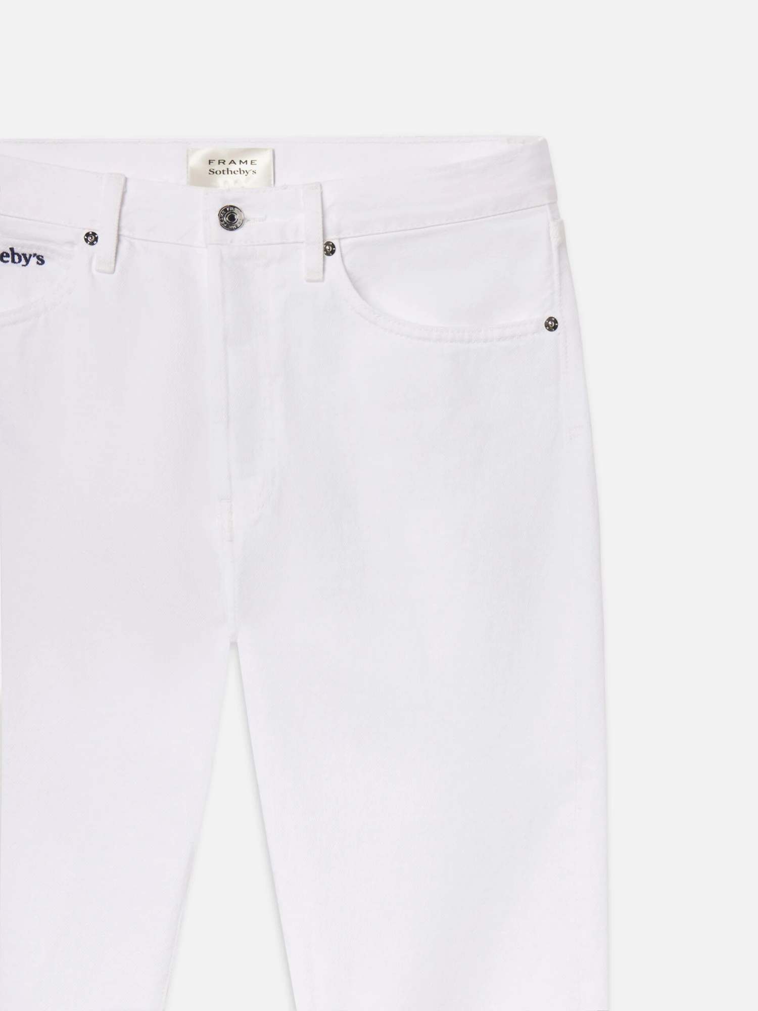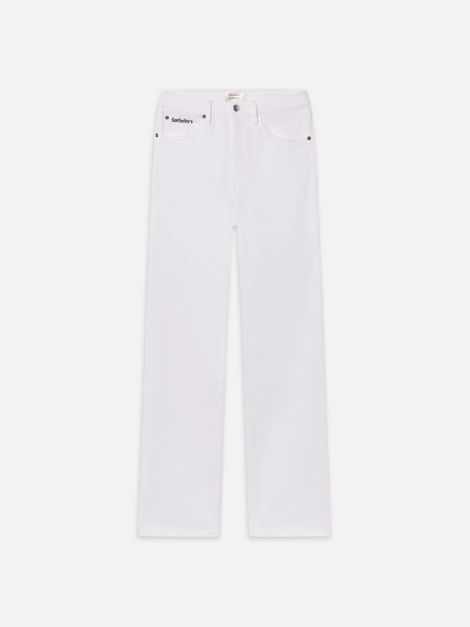 A showstopping addition to your rigid denim rotation, this classic straight-leg jean comes in a clean white wash with a high-rise waist and full-length inseam. Complete with a classic summary-fly closure and Sotheby’s embroidery on the coin pocket.