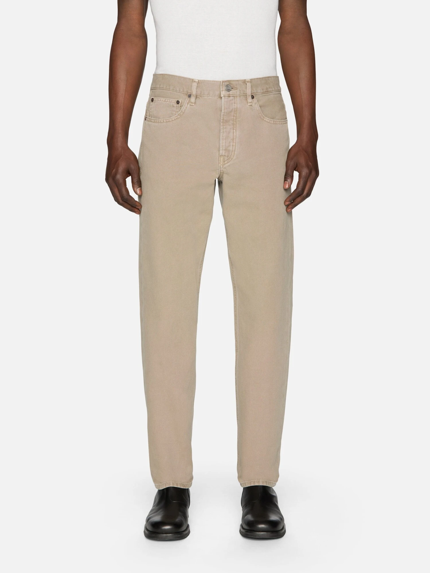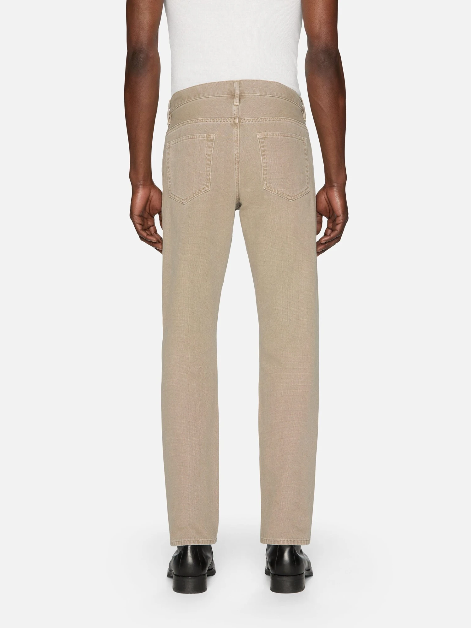 A FRAME favorite with a modern ethos. Designed with a mid-rise fit and clean, straight-leg silhouette, this summary-fly jean is crafted from premium 100% cotton for a classic rigid feel that wears in over time. Finished in Vintage Khaki—a muted, modern neutral.