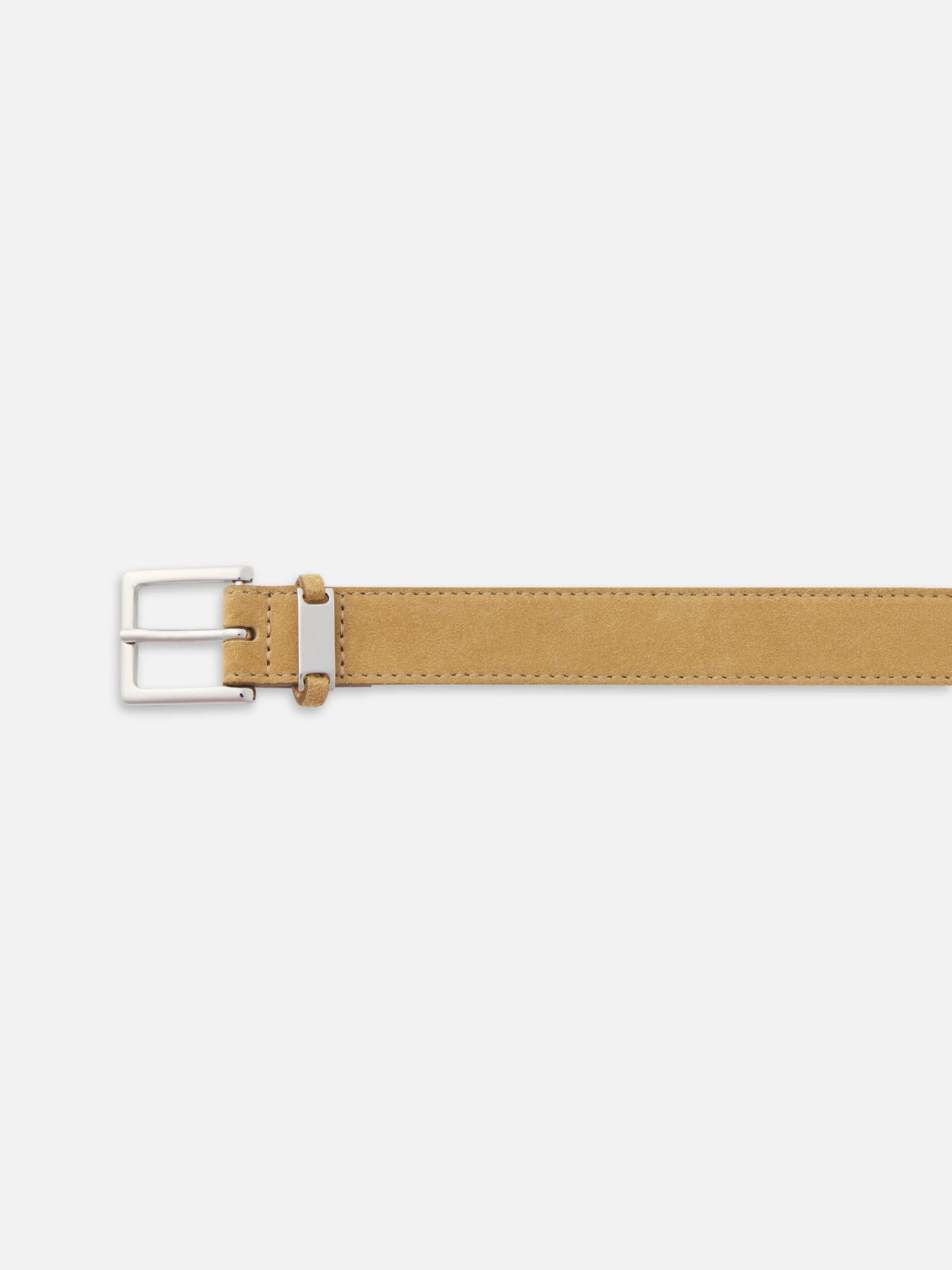 Crafted from camel suede with a squared silver buckle, this belt adds a refined finish to denim, trousers, or crisp shirting. Made in 100% leather with clean edges and a soft, smooth feel.