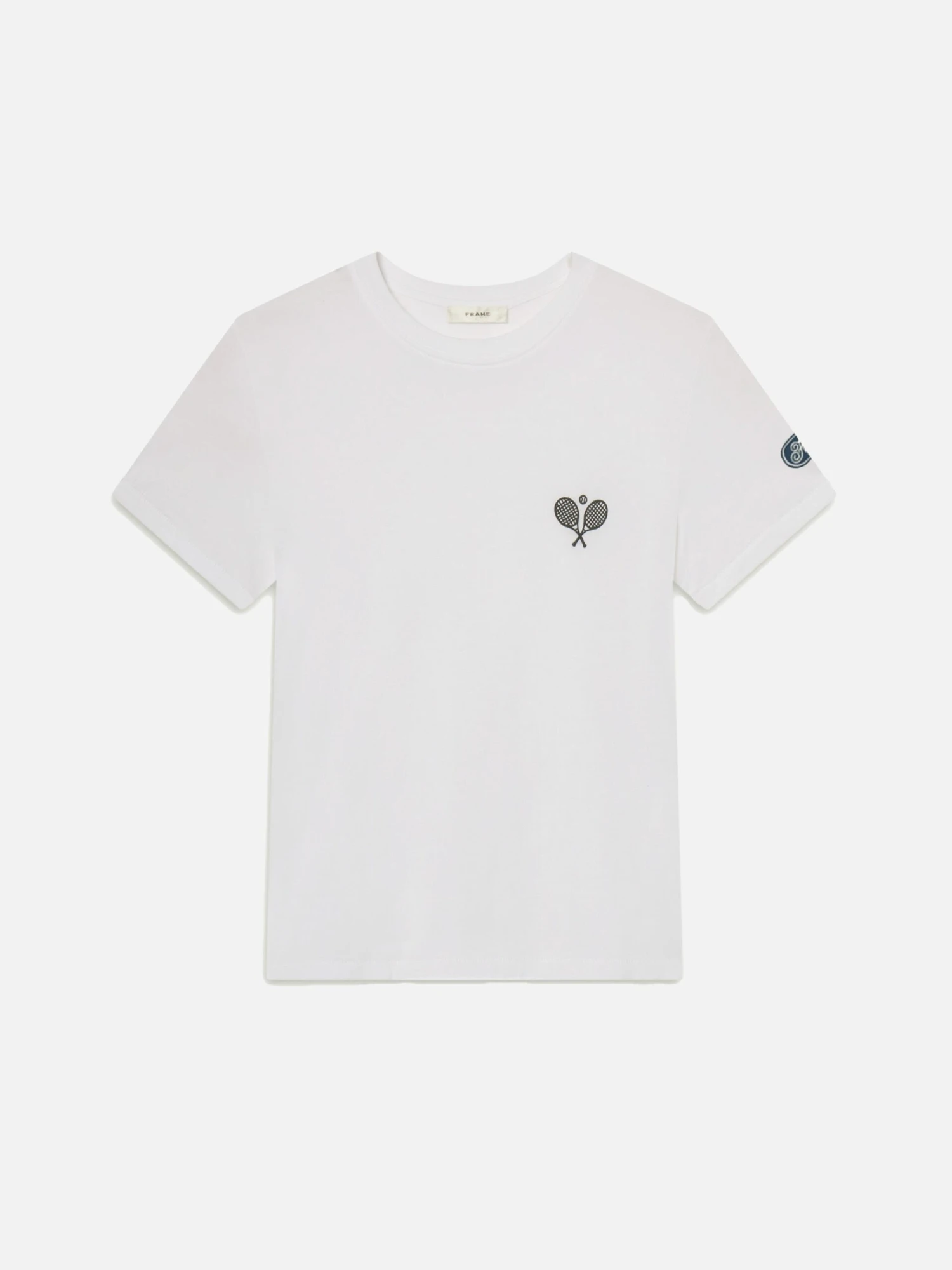 From our Tennis Capsule, this classic shrunken tee features embroidered tennis rackets at the chest. A wink to heritage style, rendered in soft, breathable cotton.