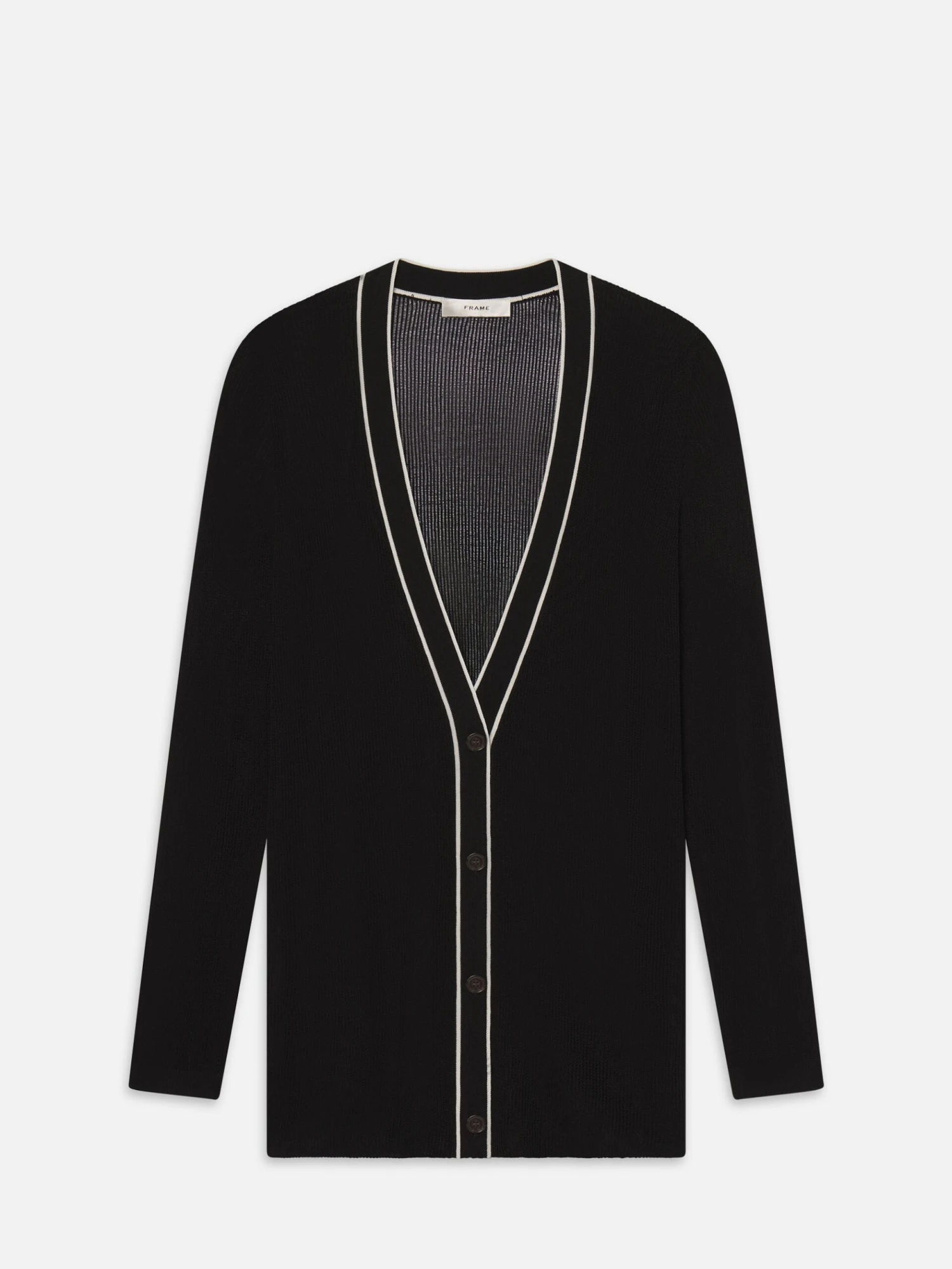 Prep, perfected. Knit from a breathable cotton-viscose blend, this open-stitch cardigan features bold contrast striping and varsity-inspired rib trim. The fit is close to the body without being tight—ideal layered over the matching vest and denim.