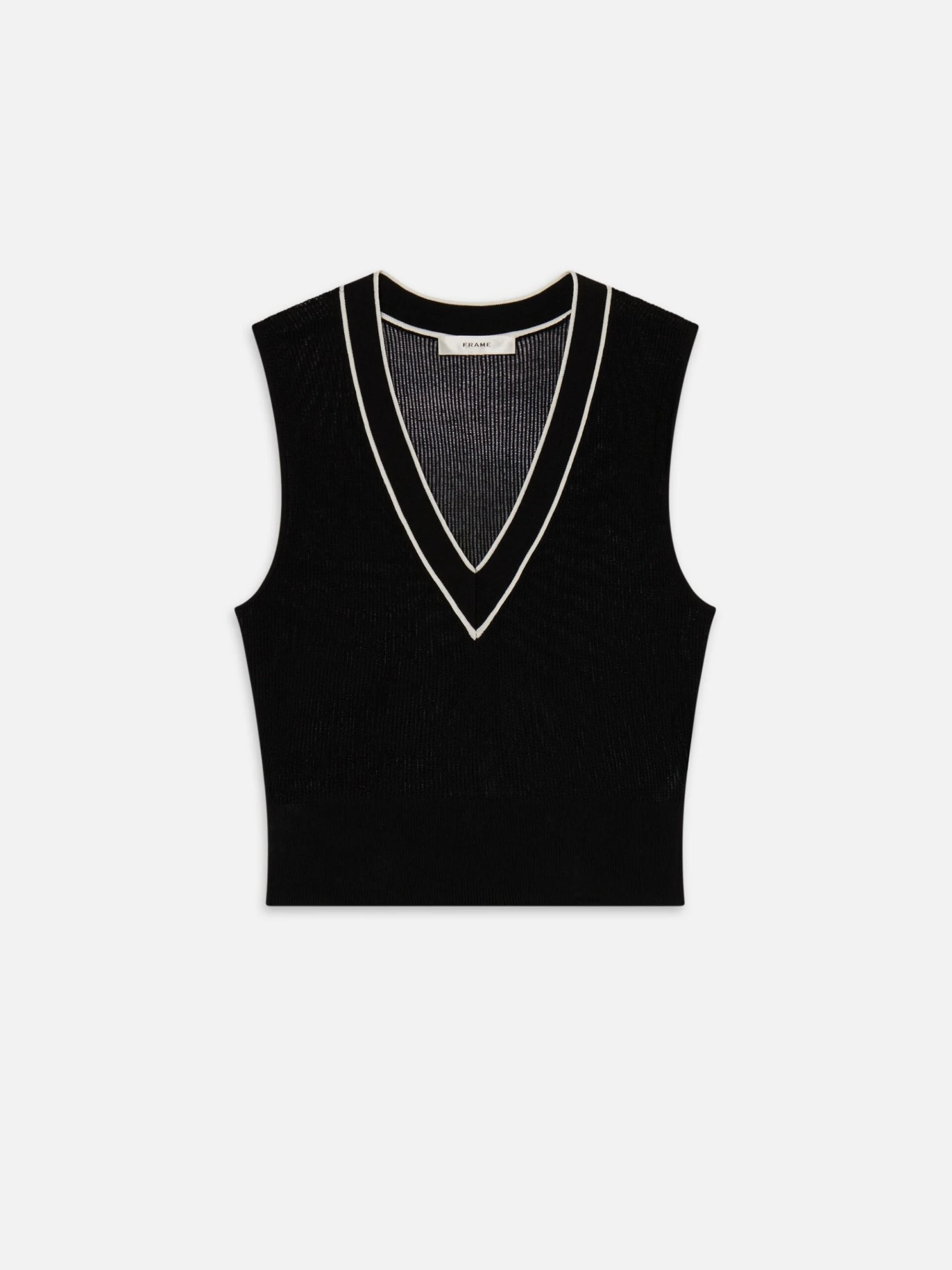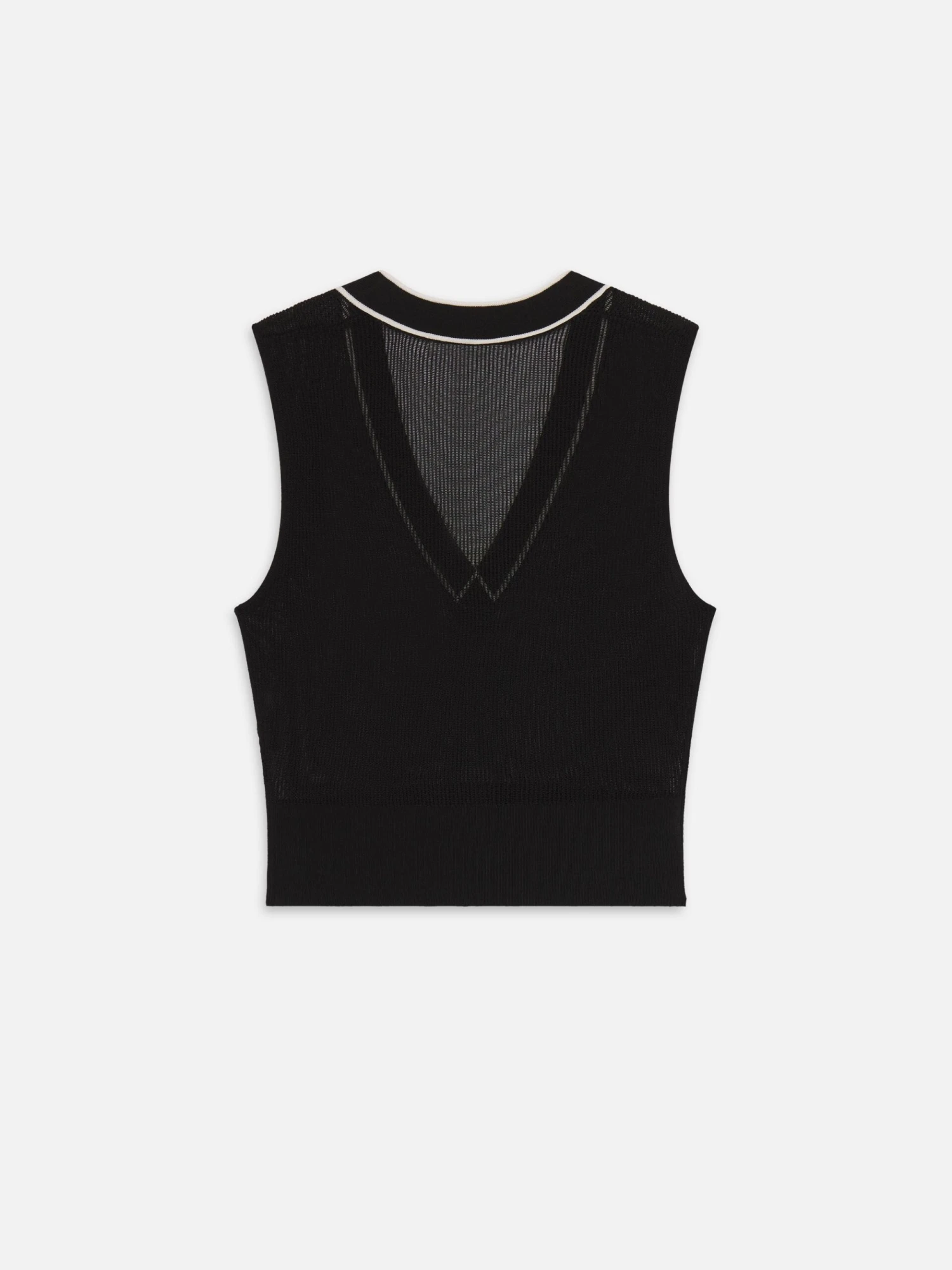 Prep, perfected. This open-knit vest features contrast striping and varsity-inspired rib trim, crafted from a breathable cotton-viscose blend. Slim through the body with a clean V neckline, it’s made to layer under the matching cardigan—or wear on its own when the forecast allows.