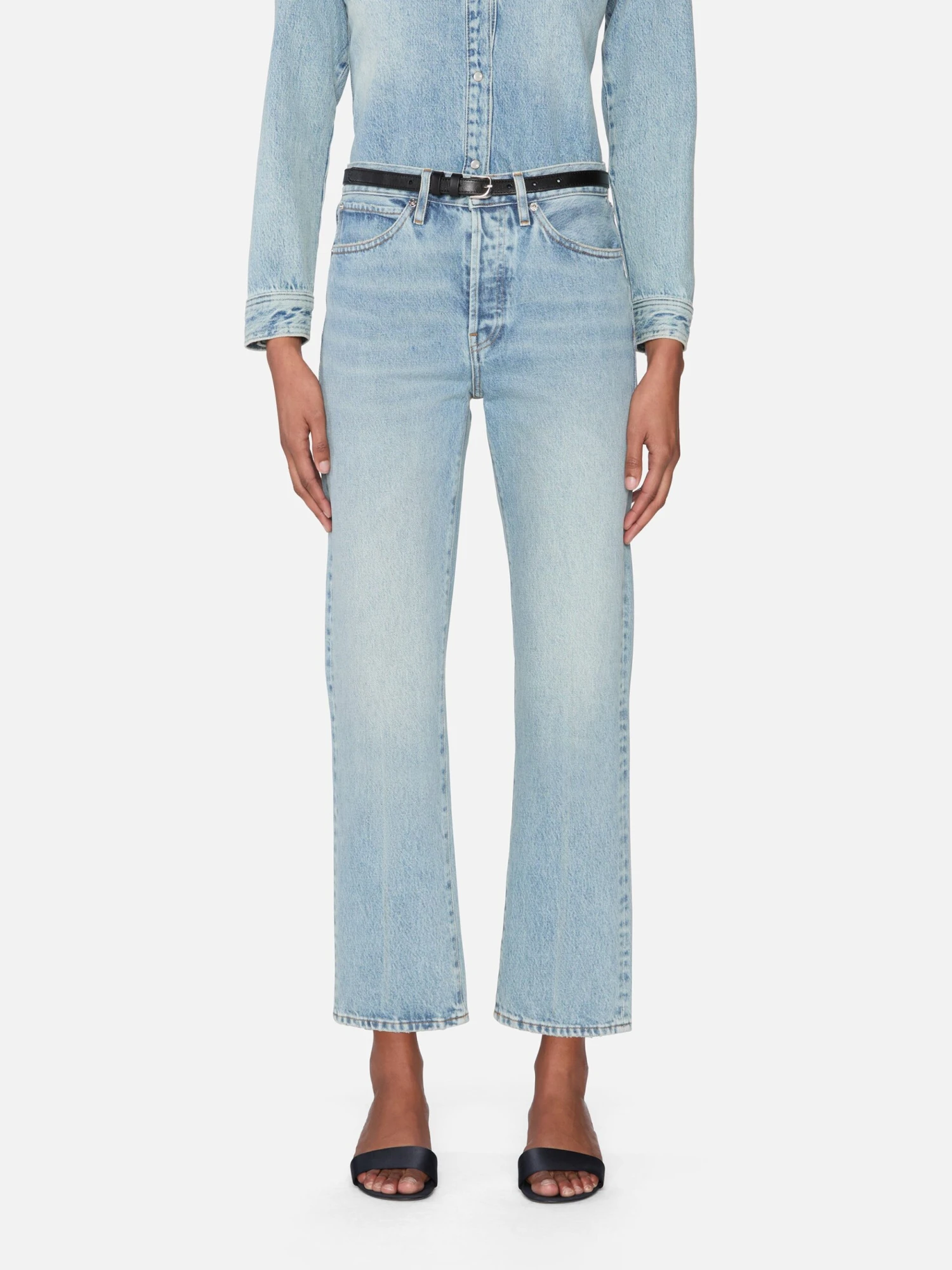 Your easiest rigid fit. The Vertical Crop sits high at the waist with a straight leg and summary fly. Cropped to hit above the ankle—an update on the full-length original, designed for now.