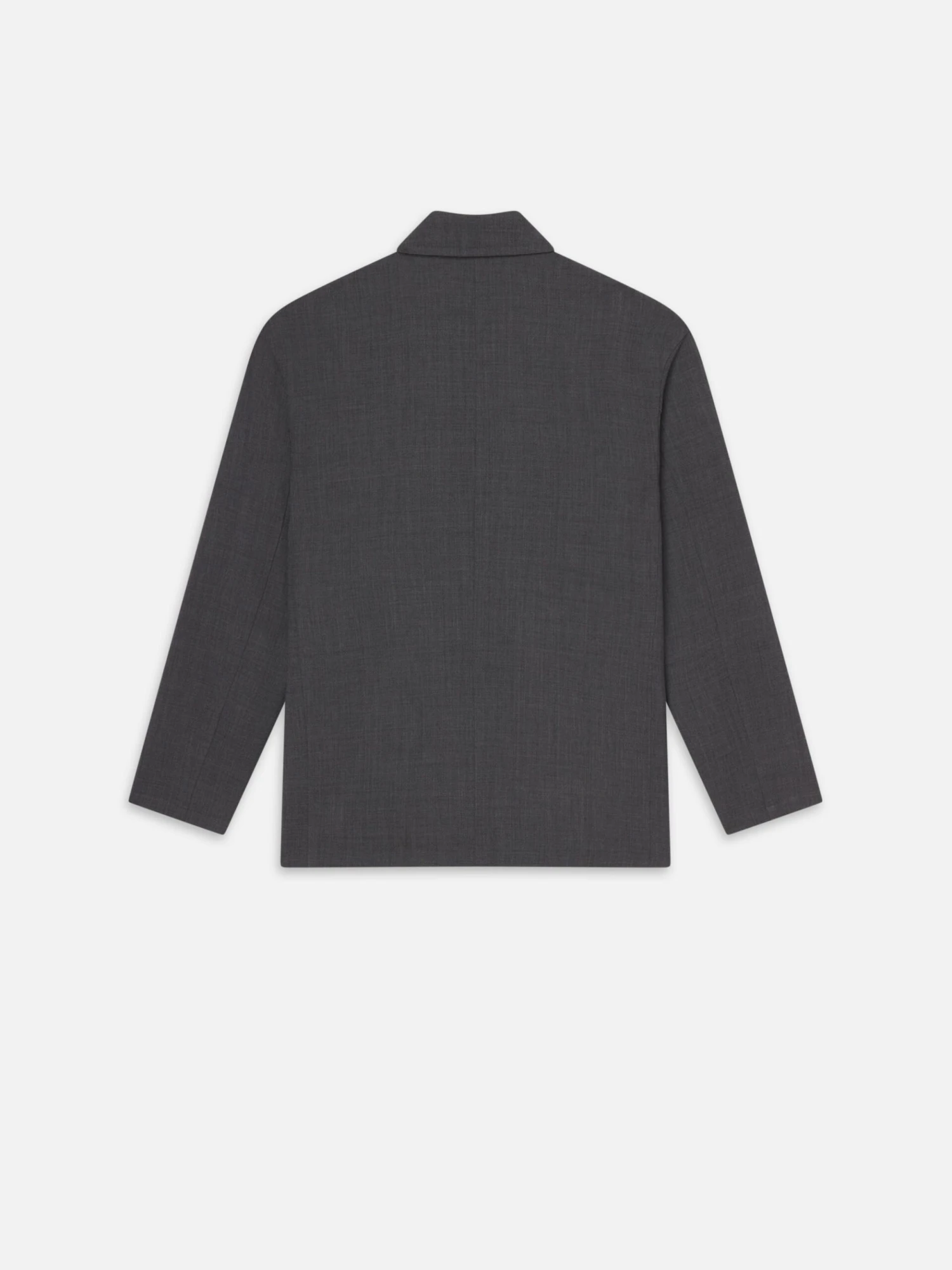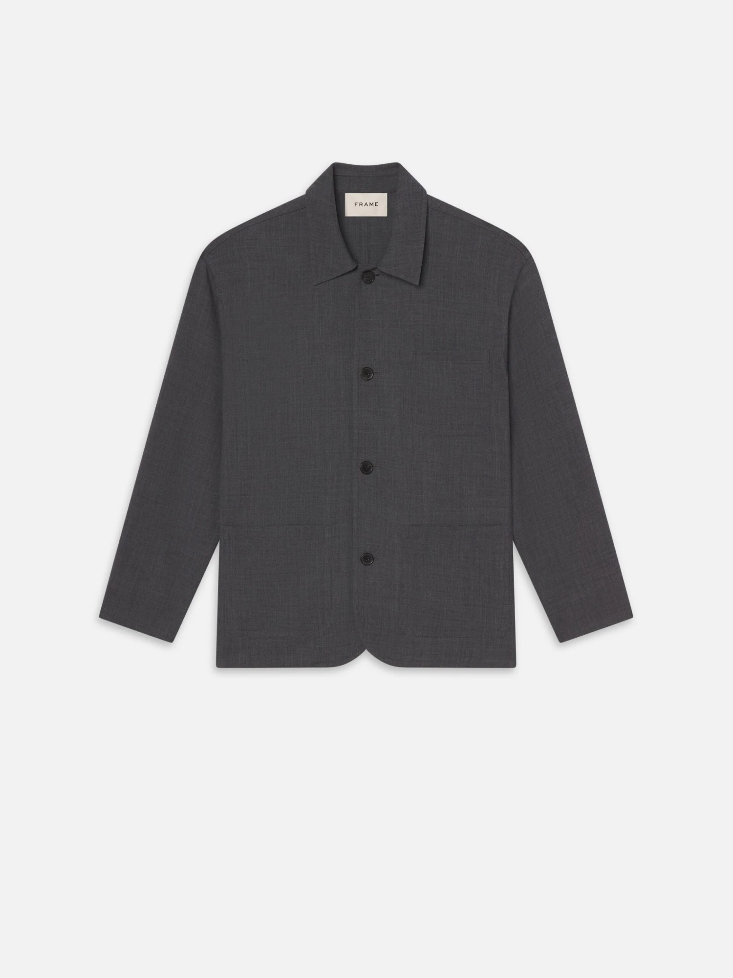 In 19th century France, the chore coat was called “bleu de travail” (quite literally blue work) whose dark wash hid stains from a laborious day. Now, the workwear staple adapts to the present in luxurious charcoal wool. Complete with large, open pockets at the hip and chest.